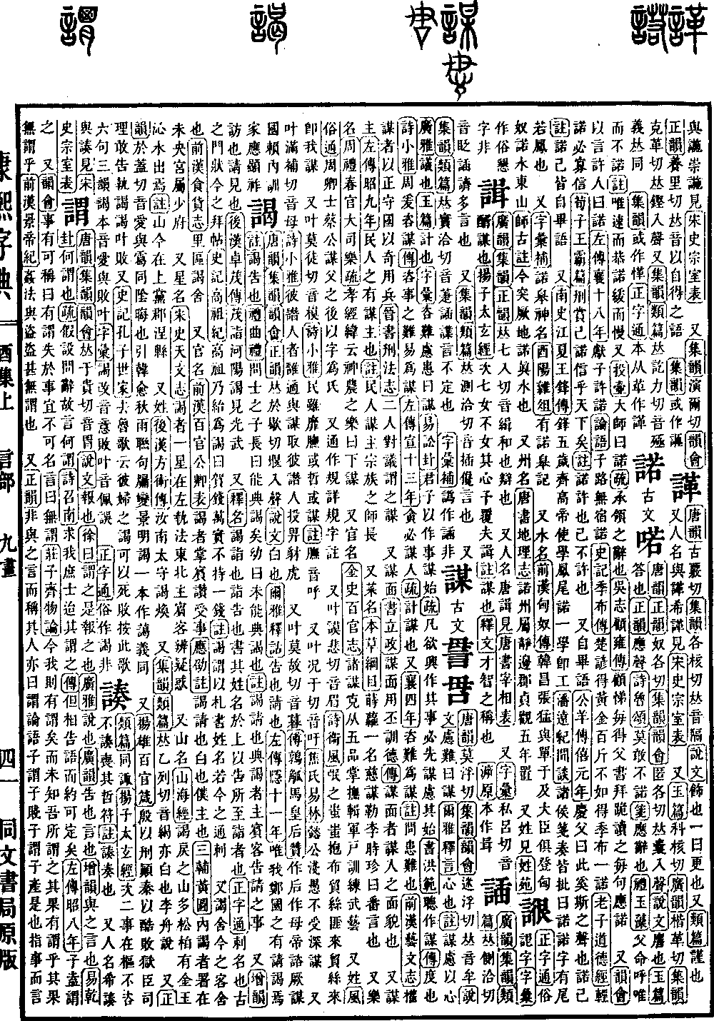 《唐韵》《集韵》《韵会》𠀤于贵切,音胃。《说文》报也。《徐曰》谓之是报之也。《广雅》说也。《广韵》告也,言也。《增韵》与之言也。《易·乾卦》何谓也。《疏》假设问辞,故言何谓。《诗·召南》求我庶士,迨其谓之。《传》但相告语而约可定矣。《左传·昭八年》子盍谓之。 又《韵会》事有可称曰有谓,失于事宜不可名言曰无谓。《庄子·齐物论》今我则有谓矣,而未知吾所谓之,其果有谓乎,其果无谓乎。《前汉·景帝纪》奸法与盗,盗甚无谓也。 又《正韵》非与之言而称其人亦曰谓,《论语》子谓子贱,子谓子产,是也。指事而言亦曰谓。《诗·召南》谓行多露,《小雅》谓天盖高之类,是也。称其言,亦曰谓。《论语》此之谓也,其斯之谓与,是也。又《正字通》援古释义而言亦曰谓。《易·临卦》大君之宜,行中之谓也。《礼·乐记》明圣者述作之谓也。 又《尔雅·释诂》勤也。《诗·小雅》心乎爱矣,遐不谓矣。《笺》谓,勤也。勤思君子也。 又《广雅》使也。《玉篇》信也,道也。 又姓。《万姓统谱》宋有谓准,太平兴国登科。 《说文》本作𧬴。*考证:〔礼乐记,圣明者述作之谓也。〕 谨照原文圣明改明圣。