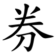 此字始見於戰國文字。古代買賣或債務的時候,先把雙方商定的內容書寫在竹、木契券上面;再用刀子分成二半,雙方各拿一半,並在每片上面刻出齒紋,作為日後契合,用來驗證真偽的憑證,所以《說文‧刀部》說:「券,契也。从刀、?(
