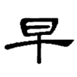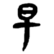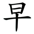 早,戰國中山王器有從日、從棗聲字,應為目前最早見的「早」字。在六書中屬於形聲。戰國文字據金文字形省,另已見有早字形,與隸、楷相同。篆文改從日在甲上。《說文》:「晨也。」段注:「晨者,早昧爽也。引伸為凡爭先之偁。」隸、楷字復誤甲為十。