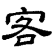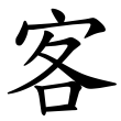 ,由「宀」、「各」二字構成。從宀,示客所來到的地方。從各,聲符,注明音讀,兼表義。各,本義為到達、來至。會二字得賓客之義。自金文下迄篆文、楷書,並從宀、各聲。在六書中屬於形聲兼會意。