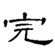 ,由「宀」、「元」二字構成。從宀,示修繕之義。從元,聲符,注明音讀,兼表義。元,聲義同於垣。會二字得修繕牆垣之義(《文字析義》,P.749),篆文、隸書、楷書承之而定體。在六書中屬於形聲兼會意。