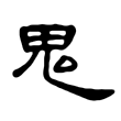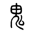 ,音ㄈㄨˊ,義為「大頭」,屬象形。從人構形,因鬼由人所轉化。金文