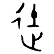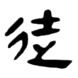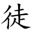 )聲,兩旁黑點,像塵土飛起。三者相合,正像腳踏土上,有塵土飛揚的樣子。金文改「止」為「辵」,成為從辵、土聲,辵也是行走的意思。戰國文字、篆文之形均是從辵、土聲,只是「辵」字構形略有不同而已。隸書、楷書則據金文、戰國文字之形,將「辵」字析解為彳、止,而將「止」置於「土」下,成為左「彳」右「走」的字形。在六書中屬於形聲兼會意。