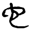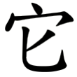 ,像蛇盤屈垂尾之形。金文二例,承自甲骨文。戰國文字二例,承自金文。篆文承自戰國文字,楷書承自篆文而定體。在六書中屬於象形。