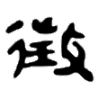」增形而來。隸書、楷書都和篆文構形一致,沒有變化。在六書中,金文字形屬於形聲,戰國文字之後則為形聲兼會意。大陸規範字作「征」。
