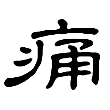 此字始見於戰國文字。戰國文字至楷書字形皆從疒、甬聲。「疒」為病人依靠床上的樣子,作為形符,表示義與病痛有關;「甬」為花朵含苞欲放的樣子,於此僅作為不示義的聲符,表示音讀。在六書中屬於形聲。
