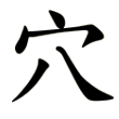 此字始見於戰國文字。其形像挖洞穴居之形,上像隆起的樣子,兩側像其邊緣,中間像其挖鑿的痕跡,據具體的實象造字。在六書中屬於象形。篆文承之戰國文字,隸書接於篆文,形變有限。唯楷書作穴,鑿痕下移作八,也就不易瞭解其初形了。